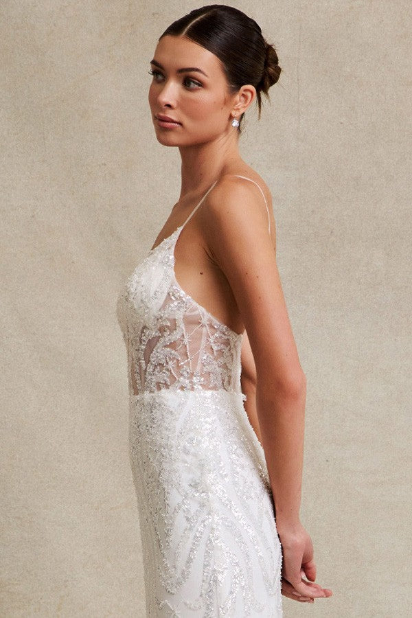 Sleeveless Skinny Straps Glitter Sequin Wedding Go